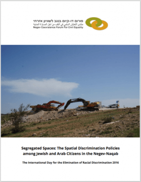 On the international day for the elimination of racial discrimination (March 21, 2016) the Negev Coexistence Forum (NCF) published a new report exposing the state’s mechanisms to ensure spatial segregation among Arab and Jewish citizens. The report reveals a number of instances of discrimination, including the use of admission committees to exclude non-Jewish families from obtaining housing in new settlements, the high numbers of segregated Arab and Jewish communities, and the obstacles set up to maintain this segregation.