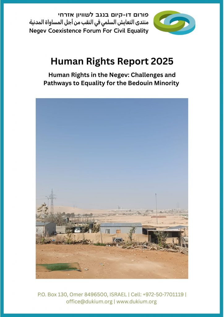 The Negev Coexistence Forum (NCF) has submitted a report to the Special Rapporteur on Minority Issues, focusing on the Bedouin community in the Negev. The report highlights cultural, religious, and linguistic challenges, along with legislative and structural barriers that hinder the preservation of their minority identity within Israel. The submission aims to inform the Special Rapporteur’s report, which will be presented to the Human Rights Council in March 2025, at its 58th session, and to advocate for policies that protect the Bedouin community’s rights and identity.