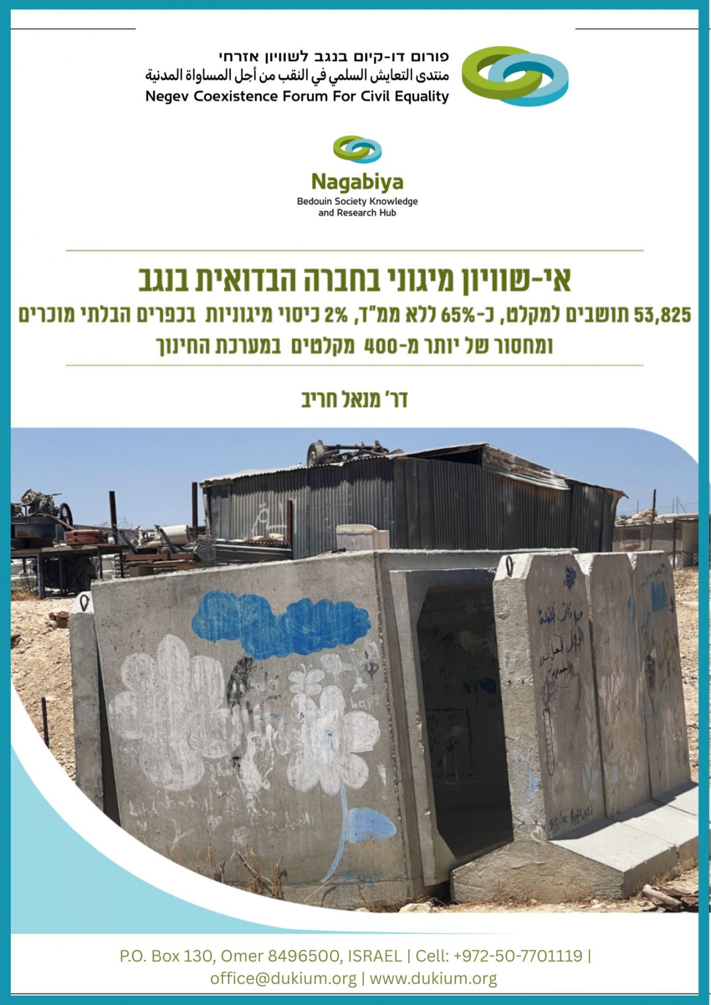 Nagabiya, part of the Negev Coexistence Forum for Civil Equality (NCF), conducted a study on access to shelters in Bedouin communities in the Negev. Based on official data and community surveys, it reveals significant gaps in civilian protection. Most Bedouin families lack protected rooms, public shelters are scarce, unrecognized villages have little to no protection infrastructure, and many classrooms are inadequately sheltered. These issues stem from longstanding planning policies and unequal resource distribution.